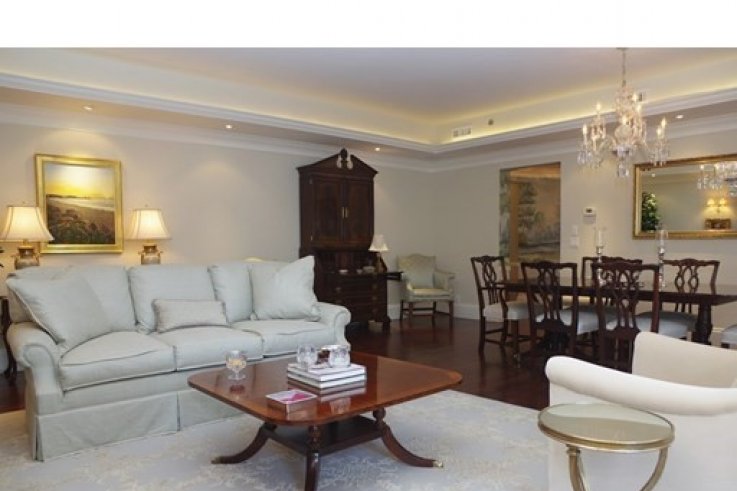 Meticulously RENOVATED to perfection, this pristine 2+ bedroom home at The Heritage On The Garden boasts elegance & grandeur. Beaming with natural light through 14 windows, this 2,400+/- sf single floor home boasts detailed custom millwork throughout. Revel in the expansive living room & accompanying dining area. The striking kitchen displays beautiful marble counters, top-of-the-line Wolf appliances, paneled subzero fridge & sun-filled breakfast bar. The tranquil master suite offers a spa-like bathroom with double vanity, additional dressing table, & two separate oversized (6x11 each) walk-in closets. Outstanding guest bedroom with sophisticated en-suite bath features exceptional finishes and fixtures. The distinguished den, rich with detail, offers 3rd bedroom option. Additional custom built-in office sits conveniently on its own. Spacious in-unit laundry room, audio system, extra storage. Private Residents Library. 2 garage parking spaces included complete this spectacular home.