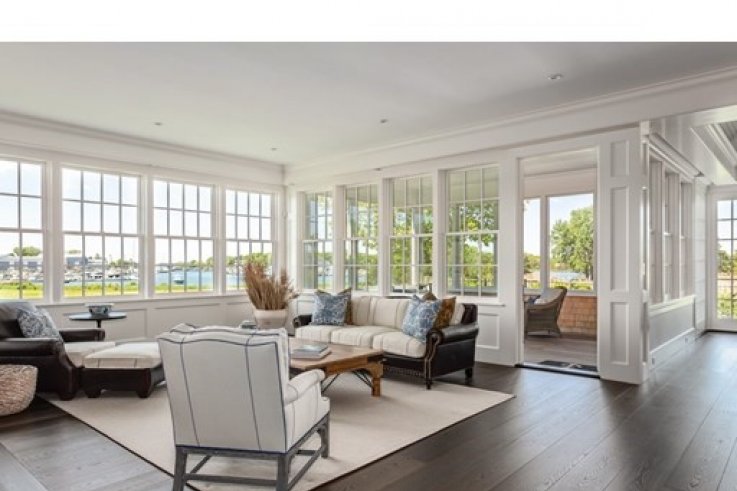Magnificent seaside estate boasts exquisite architectural finishes, commanding views of North Bay, lush meadows, and private dock. Masterfully built in 2016 by Peter Boyle, this gracious residence has been meticulously designed by Ivan Bereznicki to capture sensational water and golf course views while effortlessly blending the finest craftsmanship with luxurious amenities to create an idyllic seaside retreat. Highlights include state-of-the art kitchen with superb finishes, waterside fireplaced living room, paneled library with built-ins, splendid master suite, three handsome guest bedrooms with en suite baths, and serene vistas from nearly every richly appointed room. Tucked away yet close to village amenities, this one-of-a-kind masterpiece is the pinnacle of refined coastal living.