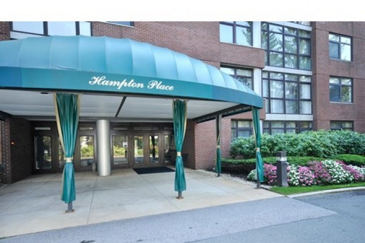 Price reduced by $50,000! In fabulous Hampton Place, superb 2 bedroom, 2 bath 3rd floor unit with westerly views. Great kitchen layout with smooth cooktop range, wall oven and microwave, granite counters, loads of cabinets, and lovely breakfast bar with window cutout facing entertainment-sized dining room. Bright and comfortable dining room/living room combination. Spacious primary bedroom with fantastic custom closet room with space for everything. Updated marble bath with jacuzzi and separate shower. 2nd bedroom with excellent closet space, built-ins, and access to 2nd full bath. 2 separate garage spaces. Full luxury building with 24 hour concierge, elegant foyer, 2 heated inground pools, one interior, one exterior. Warm and inviting clubroom with fireplace perfect for large parties. Excellent gym. Beautifully landscaped grounds. Steps to Chestnut Hill's restaurants, shops, medical annexes, and Wegmans. Location plus amenities make this unit a real winner! Quick occupancy possible.