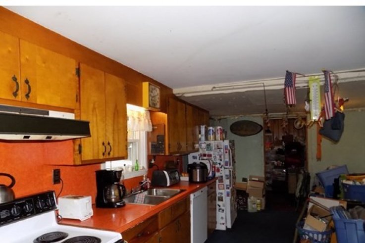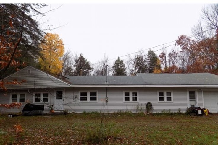 Located on a country road, this 3 bedroom Ranch is seeking a new owner. As you pull up the circular driveway, a private, wooded lot is the backdrop for this 1400+ sq ft home. Oversized kitchen allows for eat-in and plenty of cabinets! Remodeling the floor plan could offer the option of creating a master bedroom with master bath or larger bedrooms overall! Living room has vaulted ceiling, wood stove and knotty pine walls to add to the country charm! Laundry room and mud room, second full bath, 1 car garage with overhead storage, deck and so much more. Bring your remodeling ideas and make the house your own. This is a short sale and is being sold as-is, where-is. No repairs will be made and title 5 inspection will not be performed. Will not pass VA, FHA or Conventional. Cash or rehab loans only.