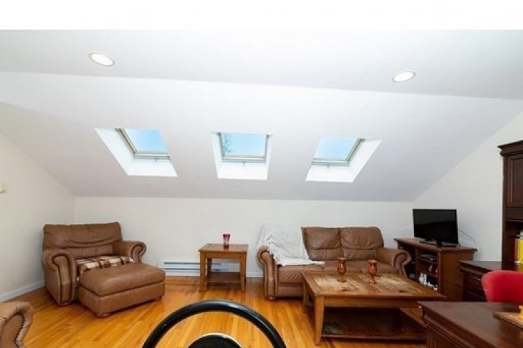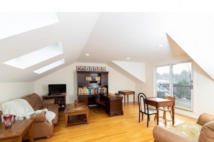 This is an elegant, spacious and bright recently renovated 3-4 bedrooms 2 level Penthouse within 6 minutes walking distance (0.3 miles) to Underwood Elementary School. This condo presents high ceilings, beautiful archways with over 2,400 sqft of living space between the two levels, hardwood floor throughout with an inviting living room that opens to a dining area with french doors leading to a bright eat-in kitchen. Two large bedrooms with two closets each are on the main level and 3rd and 4th large bedroom/den/family room/ is on the 2nd level, features skylights, cathedral ceiling, lots of storage space and a large deck. There are 2 deeded parking spaces and a common laundry (a washer and a dryer can be installed in one of the bathrooms). Minutes from Boston, Cambridge, close to MASS PIKE, shops and restaurants. PETS WELCOME ** This condo currently has tenants with a lease until August 14th, 2021. Pictures of the kitchen and bath on the second floor are current...