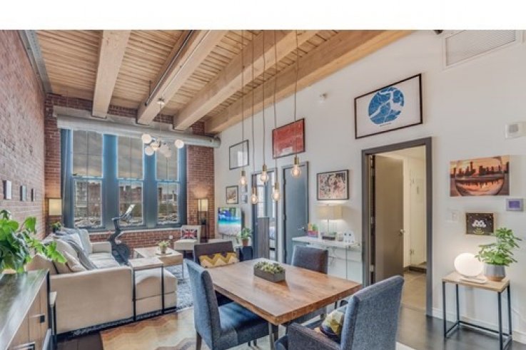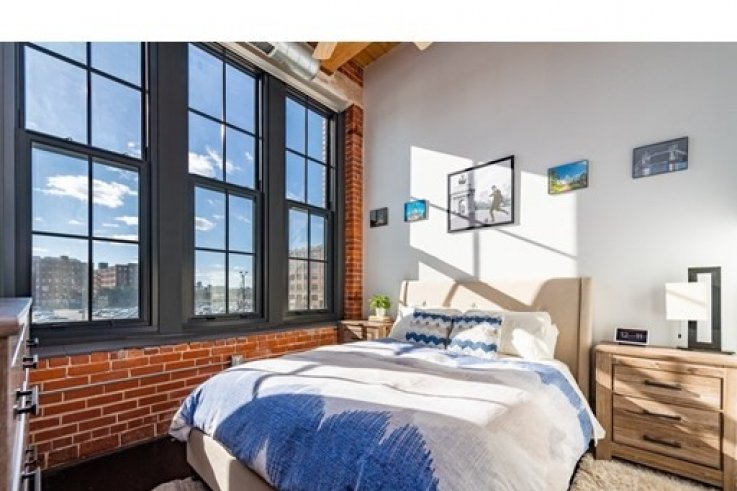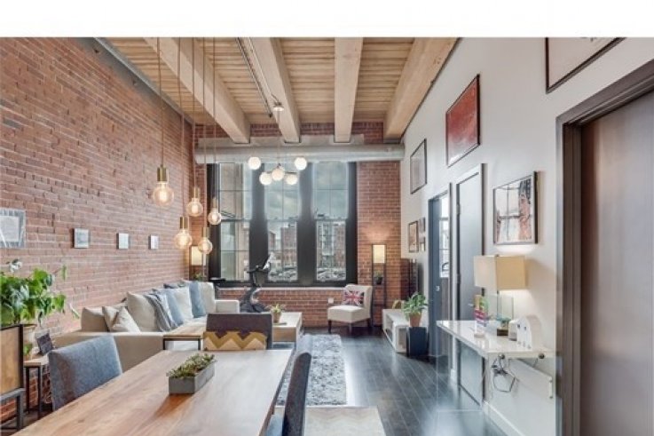 Authentic Brick & Beam Loft in Boston’s vibrant Fort-Point neighborhood, uniquely positioned at the crossroads of historic Waterfront District and ever-expanding Seaport. Boasting 13 foot ceilings & soaring south-facing windows, this wide open 1BR Loft offers not one shred of unused living, and it is, bar-none, the most thoughtfully designed layout in town. Featuring rugged red bricks, warm custom lighting, electronic window shades, walk-in closet with built-ins, and modern sleek kitchen with honed black granite counters, Bosch appliances and stylish Zebrawood finished cabinetry. Additional perks: in-unit W/D closet, high efficiency HVAC system, deeded extra storage & secure bike room. Architecturally restored & converted to condos in 2016, this professionally managed elevator building with century old original timbers features jaw-dropping curb appeal, a welcoming lounge, and a common roof-deck with skyline views. Plenty of garage parking options nearby, plus a brand new Trader Joe's