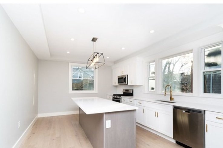 Absolutely beautiful, completely renovated, massive 4/5 bed, 2.5 bath, 2125 sq ft top floor condo. This first floor of this unit features a gourmet kitchen w/ white shaker cabinets, gold faucet/hardware, quartz counters, large island, tiled back splash and stainless steel appliances. Open concept kitchen/dining/living room featuring a ton of recessed lights. A guest bedroom and a powder room off of the living area. A large, new deck is in front of this unit. Upstairs includes a flexible floor plan with 3/4 bedrooms, laundry room, full bath and the master suite. Master suite includes a gorgeous black and white bathroom with a custom walk in shower. High ceilings, wood floors and high end finishes throughout the unit. Each bathroom features hand-selected tile from a designer. New HVAC – featuring energy efficient tankless water heater, and central air, new roof, new windows, basement storage, in-unit W/D hook up and off-street parking. Close to downtown, Public Trans, 93.