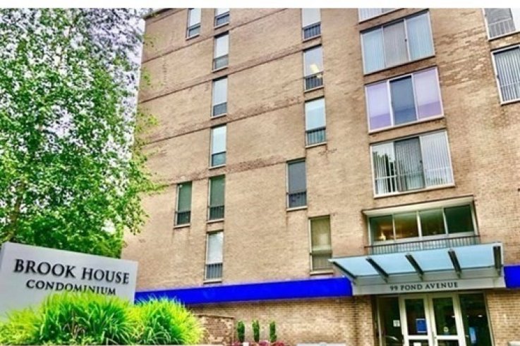 Single level 2 bed 2 bath condo at the sought after Brook House. End unit and one of the largest in the complex with beautiful view of the pond at Olmsted Park. Completely remodeled from studs, no popcorn flat ceilings, track lighting, new windows, balcony slider, optimized central heat positioning. Energy star fridge, Bosch appliances including stove/oven, microwave, and dishwasher. Open Kitchen with granite counter tops, dining/serving peninsula. Luxurious bathrooms. Community features include concierge, resort style pool, patio and grills, multiple gyms, common areas, tennis courts, function room and renovated lobby. Pet Pet friendly, non-smoking, close to public transportation. Great location, close proximity to everything!