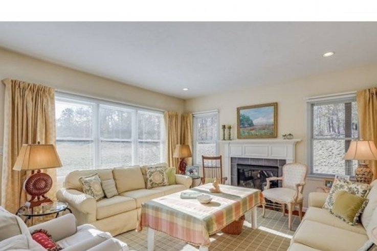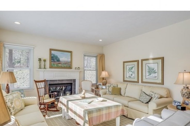 A private cobblestone courtyard leads to this “L” model end-unit situated in Winslowe’s View at The Pinehills with wooded views. This home contains many upgrades to include hardwood floors, recessed lighting, irrigation system. This one-level living home has an open floor plan wonderful for entertaining. Home includes a large master bedroom suite, guest bedroom. The spacious eat-in kitchen with breakfast bar, light gray cabinetry, Corian countertop is right in the middle of this open concept home. Dining room with door to exterior private patio. Living room with marble surround gas fireplace and separate, cozy family room with built in bookcases. Den is perfect for an in home office or study. New refrigerator, stove, microwave, washing machine and water heater. This is a great home! Great outdoor space. Come enjoy all The Pinehills has to offer!