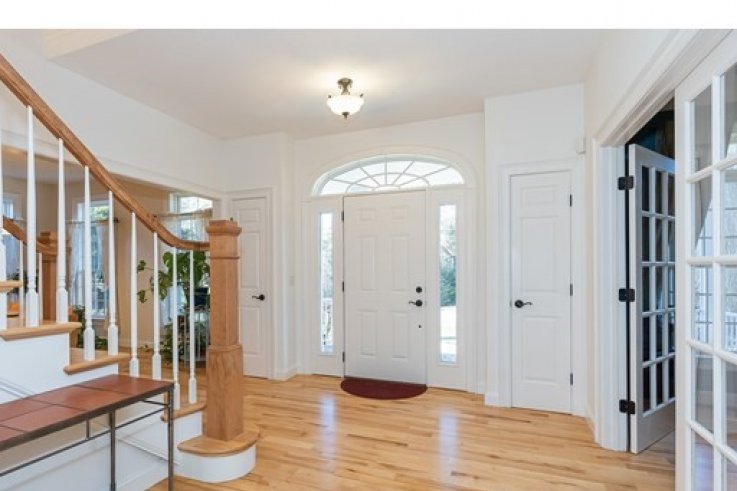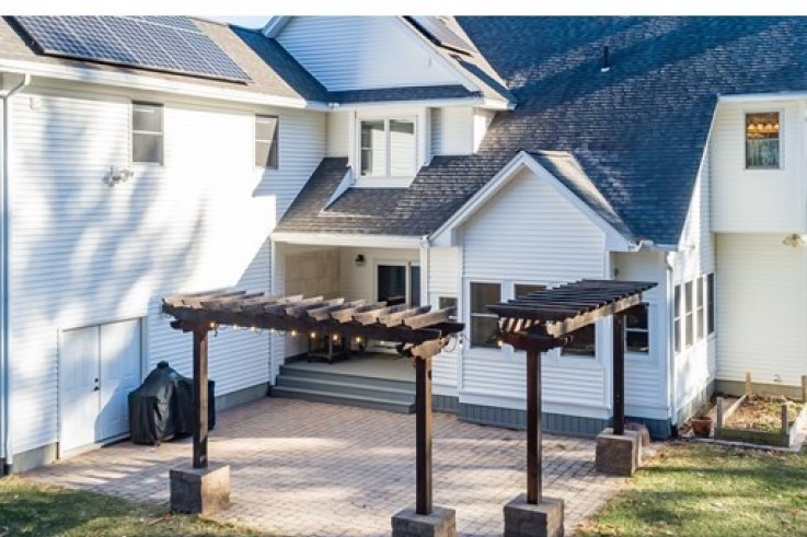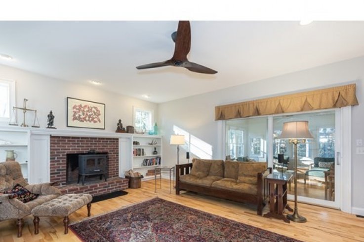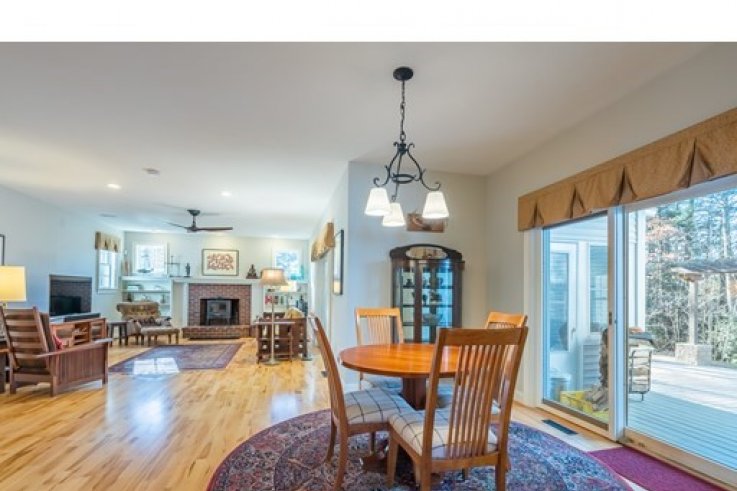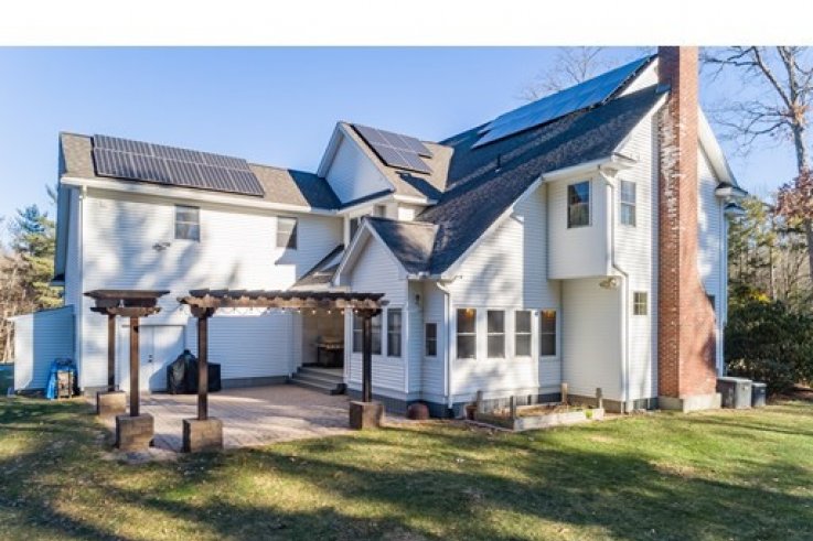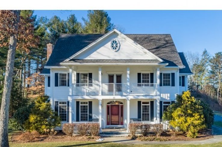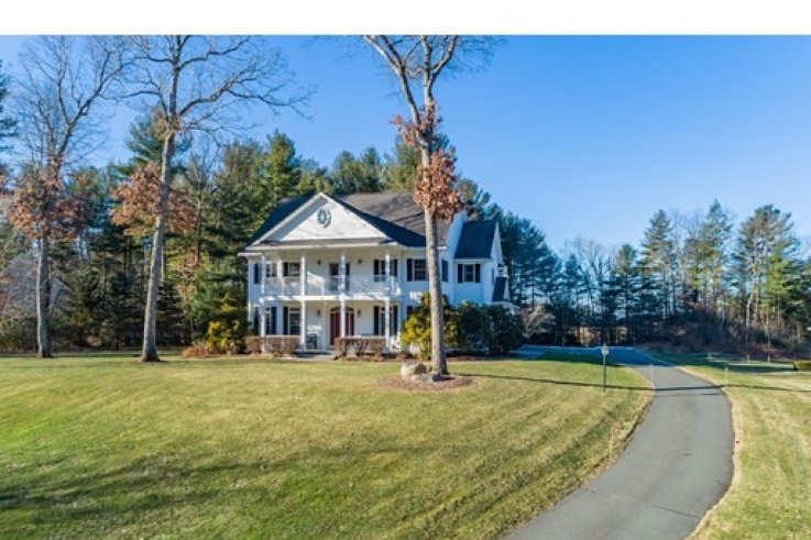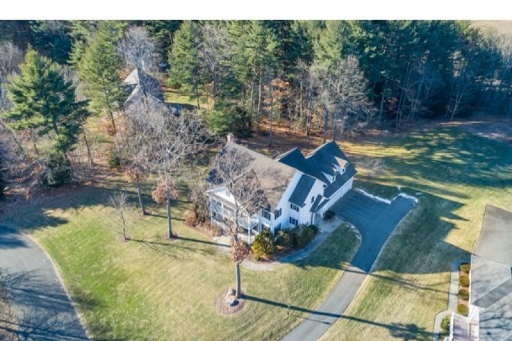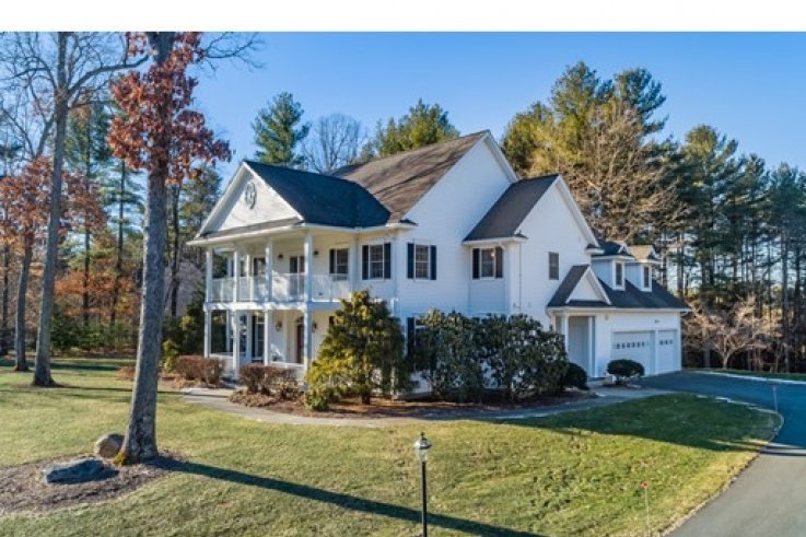 Handsomely set on a 1.84 acre lot is this distinct Georgian Colonial home. Elegant at first blush,this home has a family friendly floor plan that is also conducive to a winning entertainment venue. A cherry kitchen w/island & spacious dining area open to the living room w/custom built-ins & wood fireplace. A warm & inviting sunroom over looks the private back yard w/ large patio, arbor & gardens. A handsome library includes mahogany bookshelves and french doors - perfect as a private home office. The generously sized DR & circular floor plan is quintessential for large gatherings . A 1/2 bath completes the first floor. The master bedroom w/ large walk-in closet, dressing room & full bath includes a jet tub,separate shower & double vanities.There are 3 additional bedrooms & 2 more baths w/ laundry. The bonus room, presently used as a weavers studio, is desirable as a home theater & includes a wet bar with fridge. Enjoy this parklike paradise w/in minutes of Amherst center. Solar a plus!