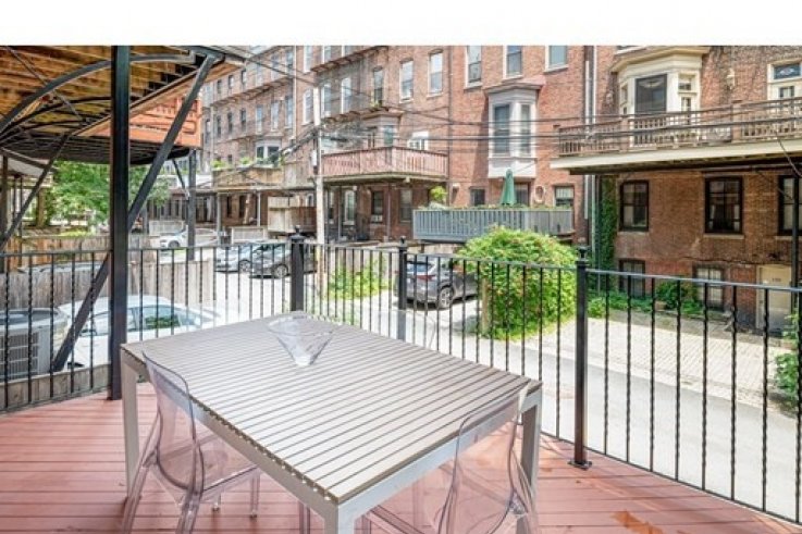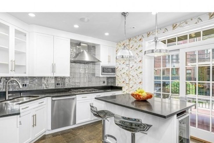 Come visit this pristine, sun-filled SF home in the middle of a coveted block in the South End. Fantastic ceiling height, large windows, gas fireplace and custom built-ins on a completely wide open parlor floor make for a striking entertaining space. The chef's kitchen, featuring Sub-Zero /Miele /Wolf appliances, has a spacious walkout terrace with a gas line for grilling. The kitchen leads right into the open dining area that can host large parties. There are two large guest rooms with generous closets and a full marble bath with W/D. The expansive master bath has marble floors, Ann Sacks tiles and Kallista faucets. There is a cedar walk-in closet and the bedroom space is large enough for a King-sized bed. There is a full staircase to the roof deck which offers 360 degree views of the city, Sonos speakers, water and lighting. There is also a 4th BR suite on the garden floor with a kitchenette, family room and separate entrance leading to an outdoor area & parking with electric charger